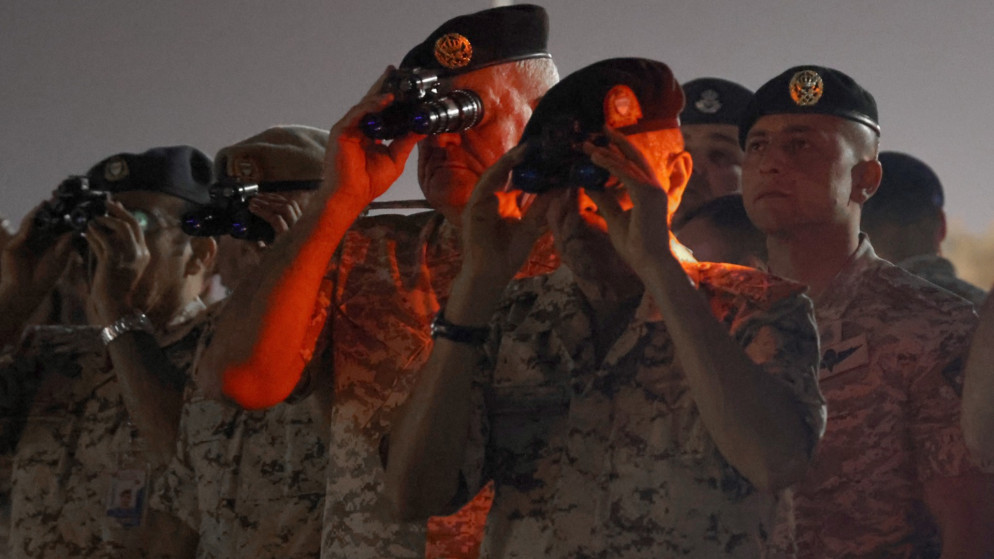 تابع رئيس هيئة الأركان المشتركة اللواء الركن يوسف الحنيطي، يرافقه رئيس هيئة أركان قوة دفاع مملكة البحرين الفريق الركن ذياب بن صقر النعيمي، مساء الثلاثاء، مجريات التمرين التعبوي الليلي "صقور الهواشم/6"، ضمن فعاليات تخريج دورة الطيران التعبوي المتقدم/14، في قاعدة الملك عبدالله الثاني الجوية.