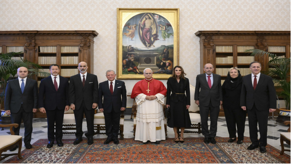 التقى جلالة الملك عبدﷲ الثاني وجلالة الملكة رانيا العبدﷲ، الثلاثاء، قداسة البابا لاون الرابع عشر بابا الفاتيكان، في القصر الرسولي.