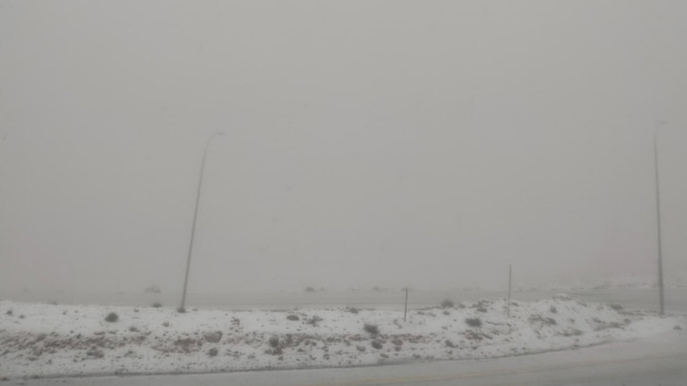 وشهدت منطقة الهيشة قرب وادي موسى جنوبي المملكة، تساقط زخات من الثلوج في ساعات الصباح الباكر.