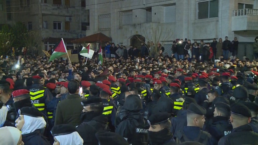 وقدر مراسل "المملكة" الأعداد بالآلاف بالرغم من برودة الطقس وصعوبة الوصول للمكان بسبب إغلاق المداخل المؤدية للسفارة الإسرائيلية في عمان.