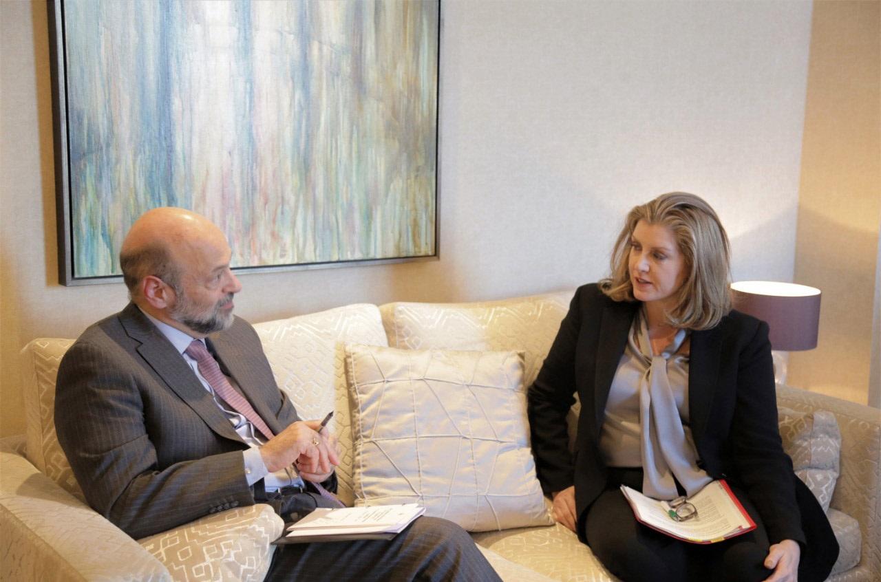 التقى رئيس الوزراء عمر الرزاز في لندن الأربعاء، وزيرة التنمية الدولية البريطانية بيني موردانت، حيث بحثا تحضيرات نهائية لعقد مؤتمر مبادرة لندن يوم الخميس، الذي يشارك فيه ممثلون عن نحو 60 دولة ومنظمة ومؤسسة دولية، من بينها الدول السبع الكبرى.