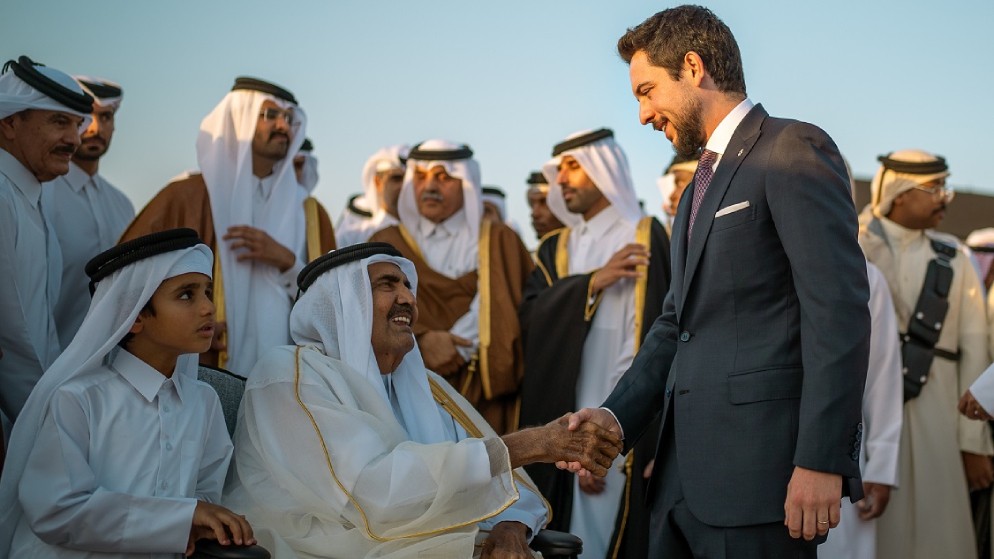 شارك سمو الأمير الحسين بن عبد الله الثاني ولي العهد، في حفل زفاف الشيخ خليفة بن حمد آل ثاني وزير الداخلية، شقيق أمير قطر الشيخ تميم بن حمد آل ثاني.