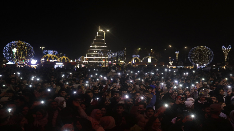 استقبل مئات السوريين في ساحة الأمويين بدمشق ليل الثلاثاء-الأربعاء، على وقع المفرقعات والأغاني الثورية، سنة 2025، يحدوهم "الأمل" بأن يحمل لهم أول عام يشهدونه منذ خمسة عقود من دون حكم آل الأسد غدا أفضل.
