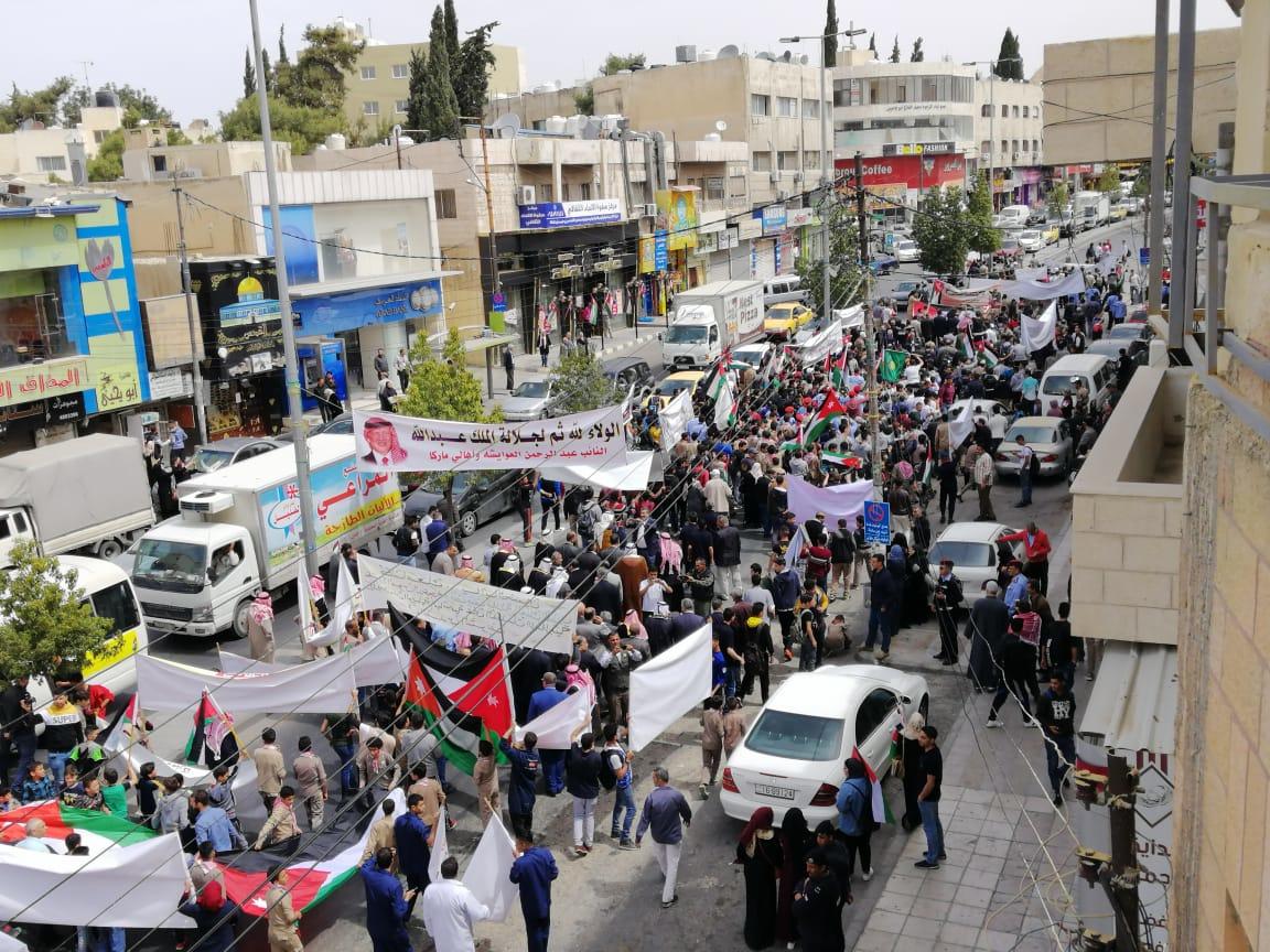 شارك المئات من أبناء لواء ماركا الاثنين، في مسيرة وطنية لدعم جهود جلالة الملك عبدالله الثاني والوصاية الهاشمية على القدس ورفض الوطن البديل.