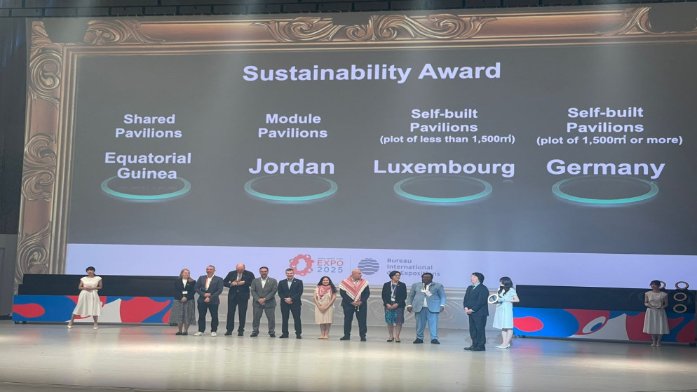 فاز الأردن، بجائزتين ذهبيتين في حفل جوائز المشاركين الرسميين الذي ينظّمه المكتب الدولي للمعارض (BIE) ضمن فعاليات إكسبو 2025 أوساكا، عن فئتي تطوير مضمون الجناح والاستدامة للأجنحة متوسطة الحجم (فئة B).