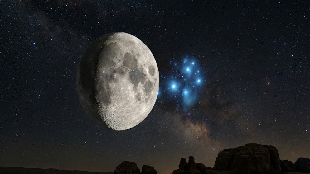 تشهد ليلة الثلاثاء/الأربعاء المقبلة، اقتران القمر بعمر تسعة أيام مع العنقود النجمي الثريا (الأخوات السبع)، وكلاهما في برج الثور، وهذا الاقتران يُشاهَد من سماء الأردن ومعظم أرجاء المنطقة العربية، وفق رئيس الجمعية الفلكية الأردنية عمار السكجي.