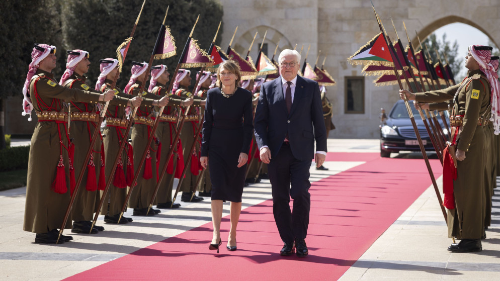 غادر الرئيس الألماني فرانك فالتر شتاينماير عمان، الأربعاء، ترافقه السيدة الأولى إلكه بودنبندر، بعد اختتام زيارة للمملكة عقد خلالها مباحثات مع جلالة الملك عبدالله الثاني.