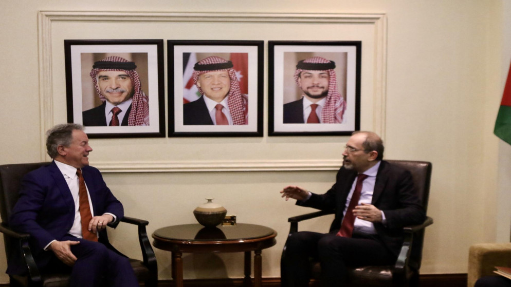 بحث وزير الخارجية وشؤون المغتربين أيمن الصفدي، الخميس،مع المدير التنفيذي لبرنامج الغذاء العالمي ديفيد بيزلي، سبل تعزيز التعاون المستمر بين الأردن وبرنامج الأغذية العالمي، بما يشمل دعم الأردن في تحمل أعباء أزمة اللجوء السوري.