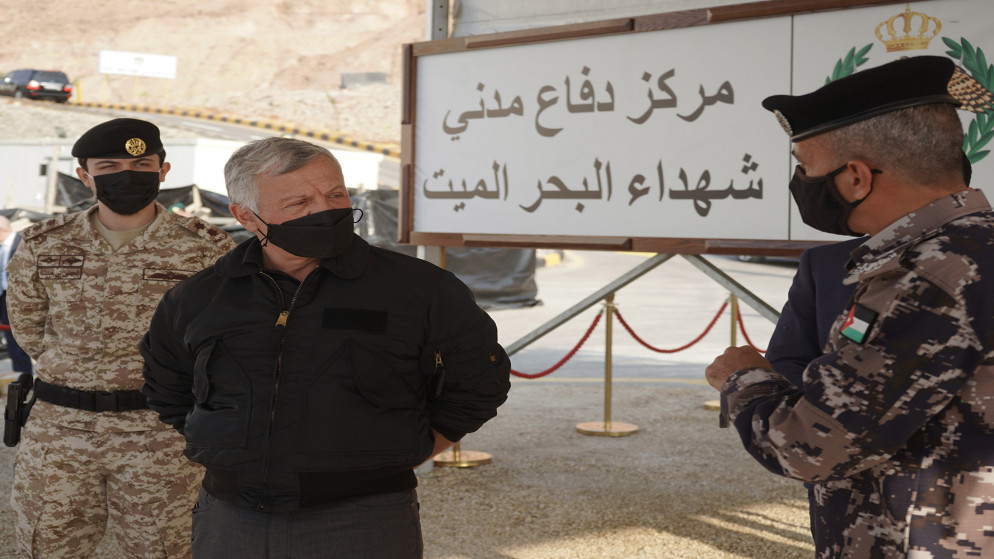 زار جلالة الملك عبدالله الثاني القائد الأعلى للقوات المسلحة، الأربعاء، يرافقه سمو الأمير الحسين بن عبدالله الثاني ولي العهد، منطقة البحر الميت، حيث تفقد مركز دفاع مدني شهداء البحر الميت، واطلع على مشروع جسر زرقاء - ماعين.